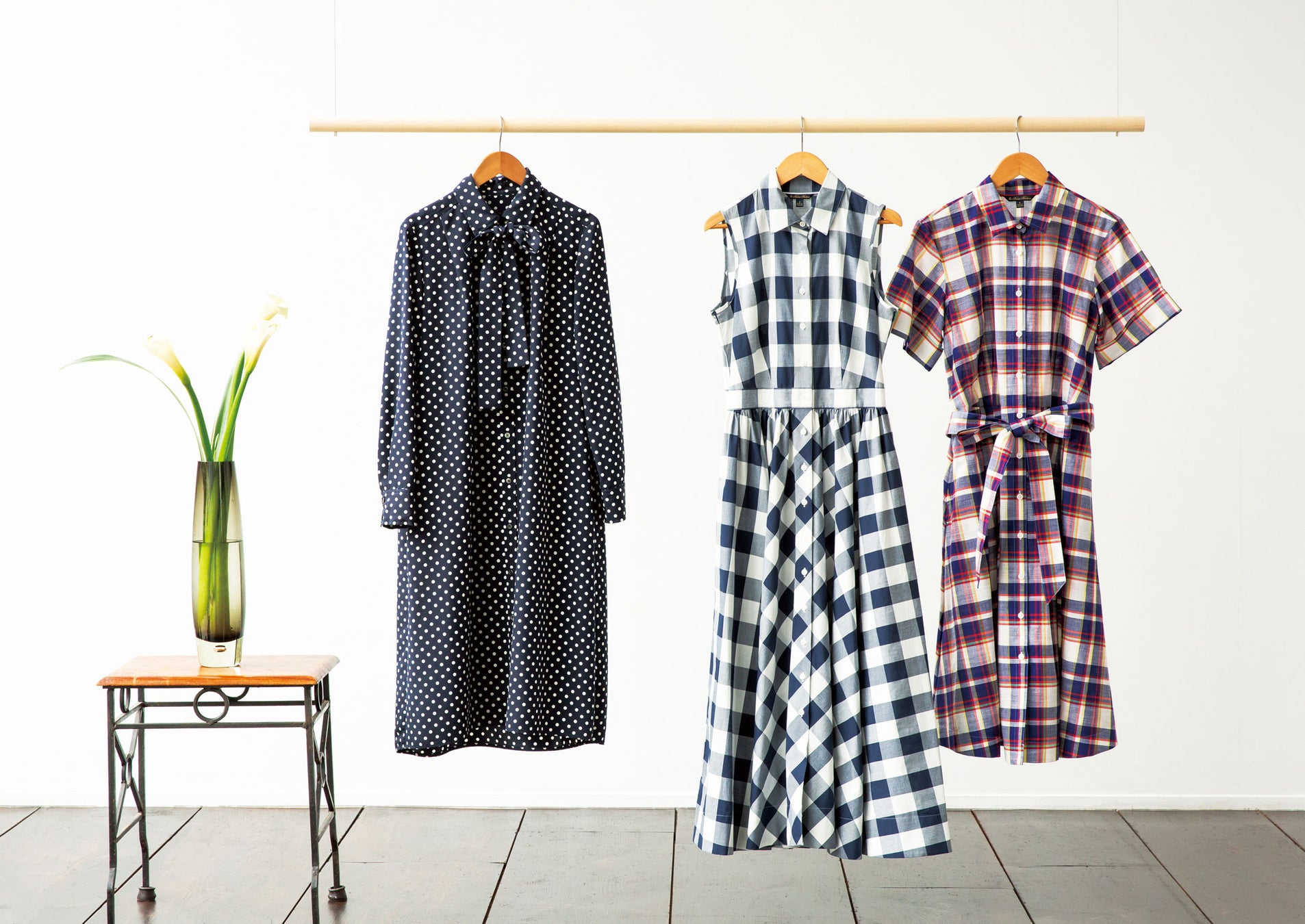 左より、ポルカドットドレス¥47,300、ギンガムチェックドレス¥39,600、マドラスチェックドレス¥31,900