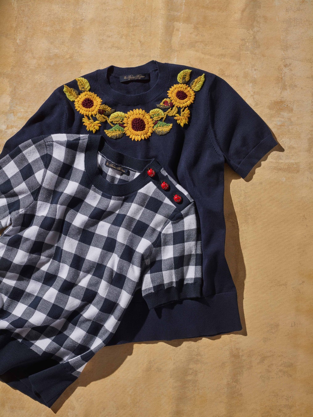 絵画的なヒマワリの刺繍が映えるコットン素材のショートスリーブセーターは、立体感のある鮮やかなヒマワリの刺繍が目を引く春夏らしいデザインです。葉にとまったてんとう虫が遊び心を添えます。同生地のカーディガンと合わせてアンサンブルとしてもお召しいただけます。