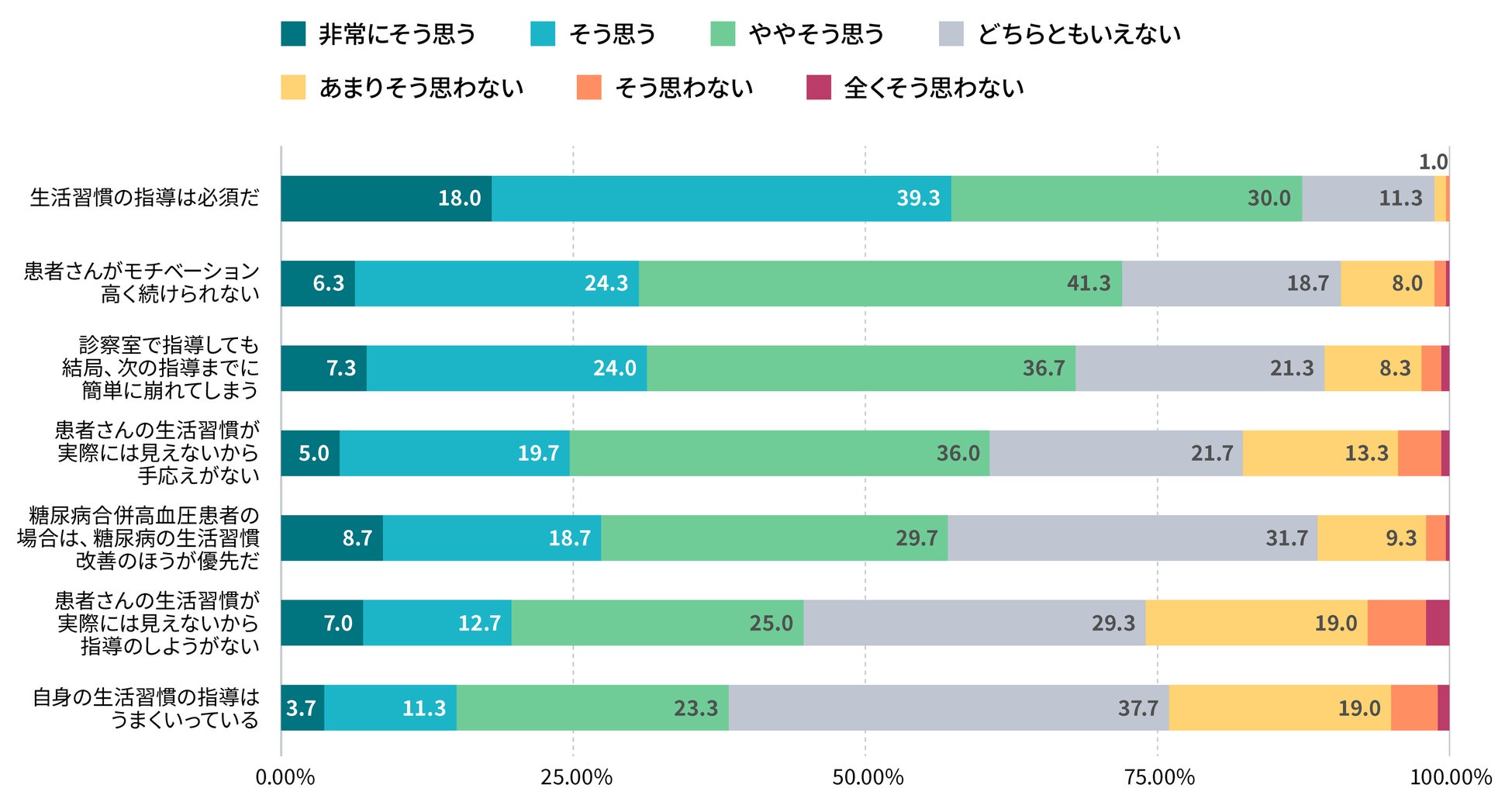 高血圧の生活習慣修正について感じていること(医師, n=300)