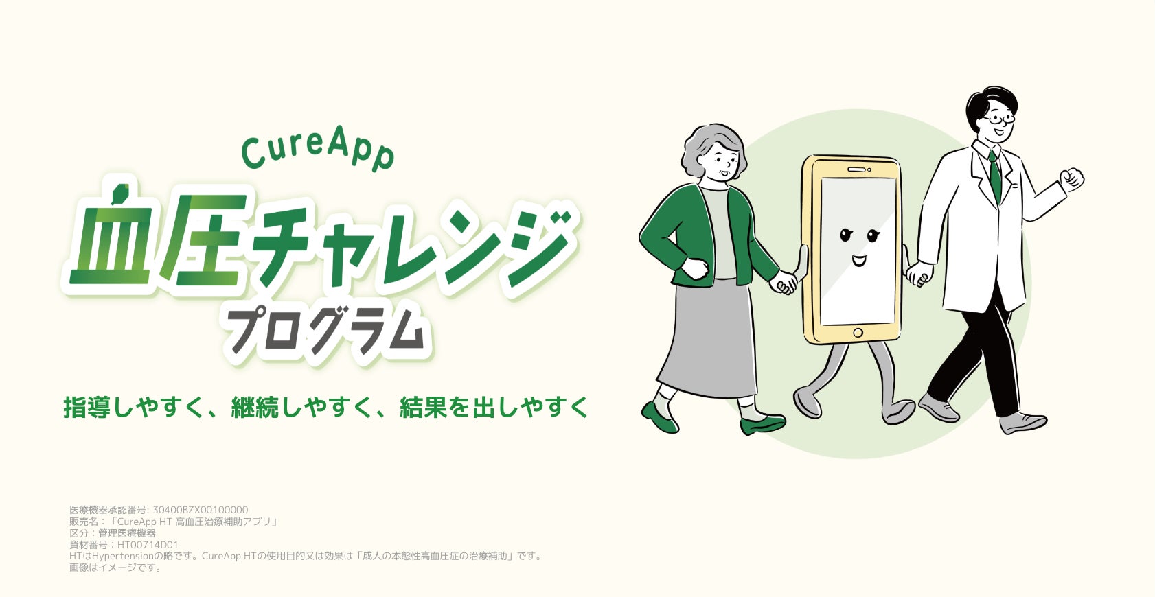 ※2:販売名:CureApp HT 高血圧治療補助アプリ /承認番号:30400BZX00100000/本製品は医師の診断のもと処方され、患者が使用する管理医療機器