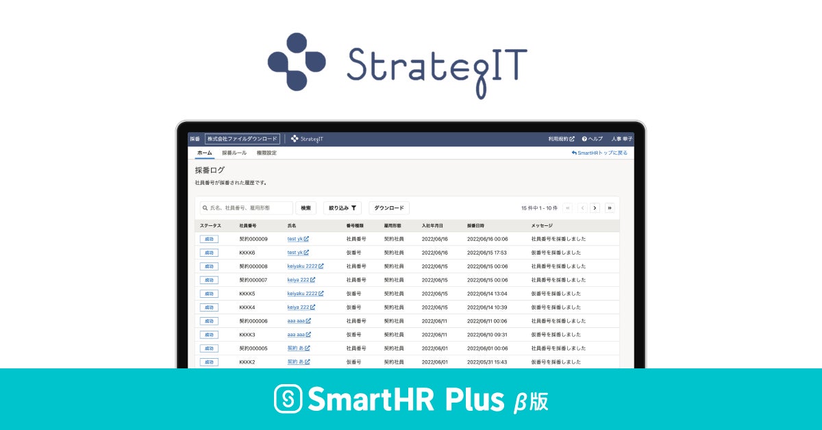 株式会社SmartHR(本社:東京都港区、代表取締役CEO:芹澤 雅人)が運営するクラウド人事労務ソフト「SmartHR(スマートエイチアール)」は、株式会社ストラテジット(本社:東京都千代田区、代表取締役:加藤 史恵)が新たに開発したSaaSアプリケーション「社員番号採番」と連携しました。