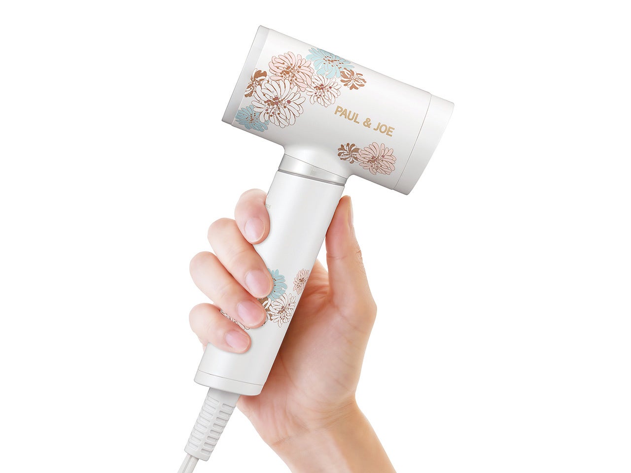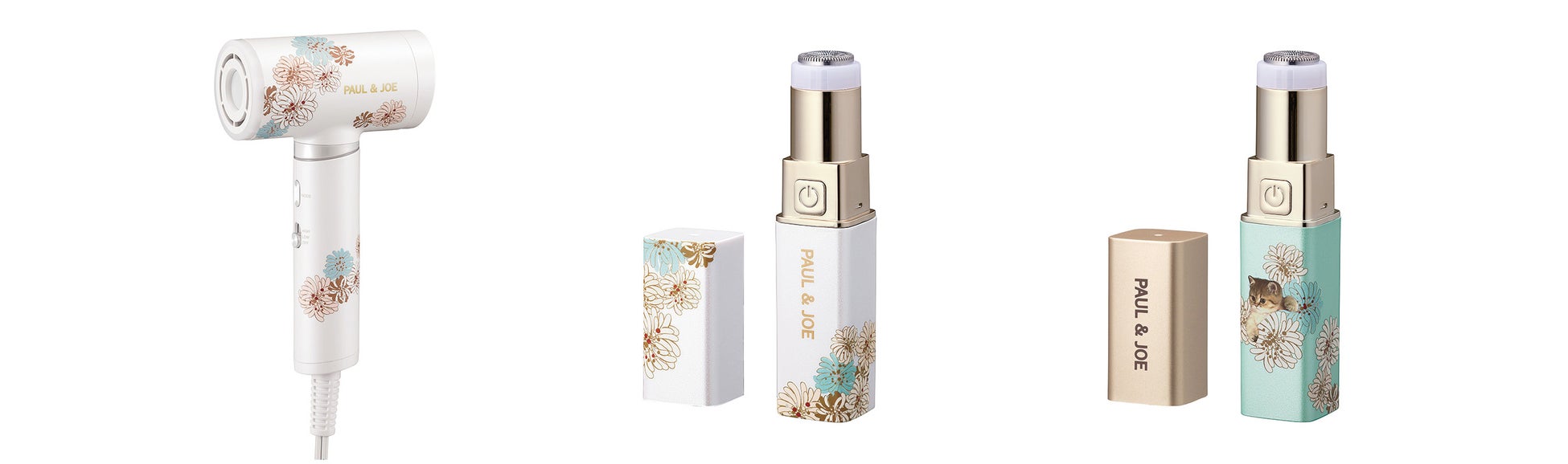 BLDCモーターを搭載し、地肌までしっかり風が届く『ハイスピードマイナスイオンドライヤー』と、刃が直接肌に触れにくい回転式刃を採用した、肌にやさしい『フェイスシェーバー』をそれぞれ展開。PAUL & JOEのブランドシンボルモチーフとして根強い人気を誇る「クリザンテーム柄」をあしらった、華やかでかわいらしいデザインです。