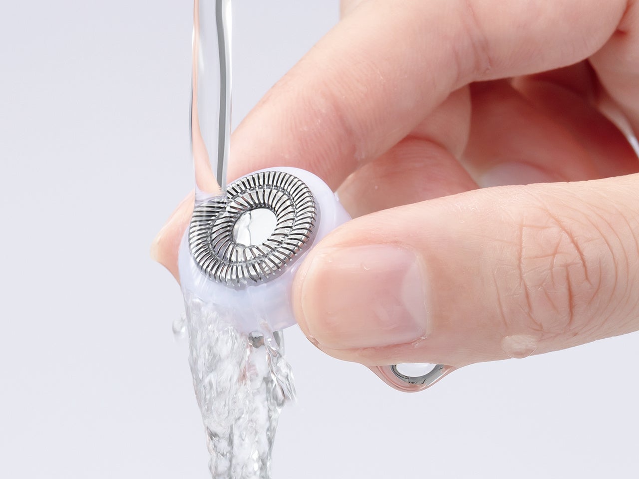 ・刃が直接肌に触れにくい、肌に優しい回転式刃を採用。