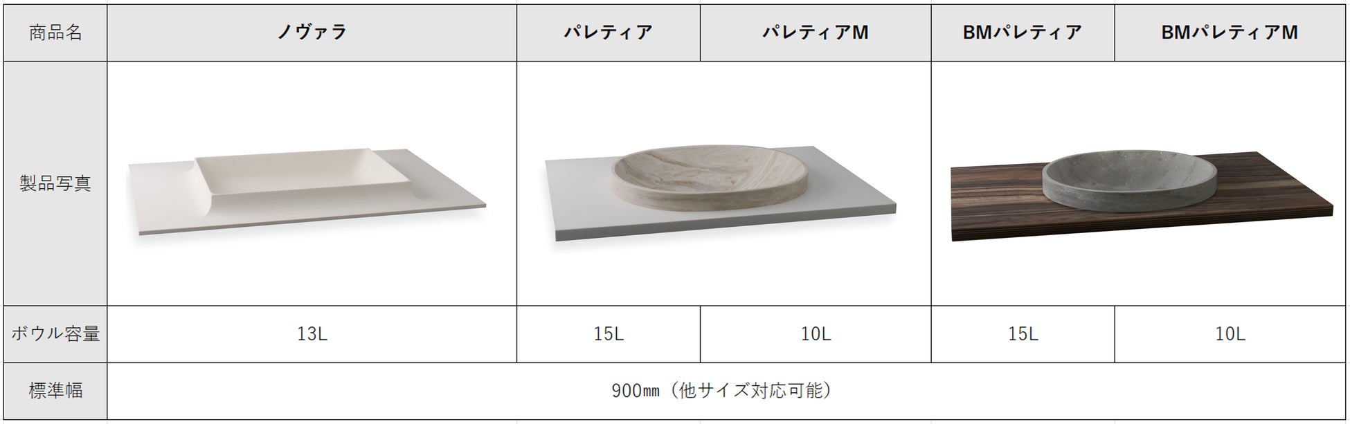 新たなボウル形状と、選択できるカラーやカウンターが増えたことで、洗面カウンターのバリエーションがさらに広がりました。