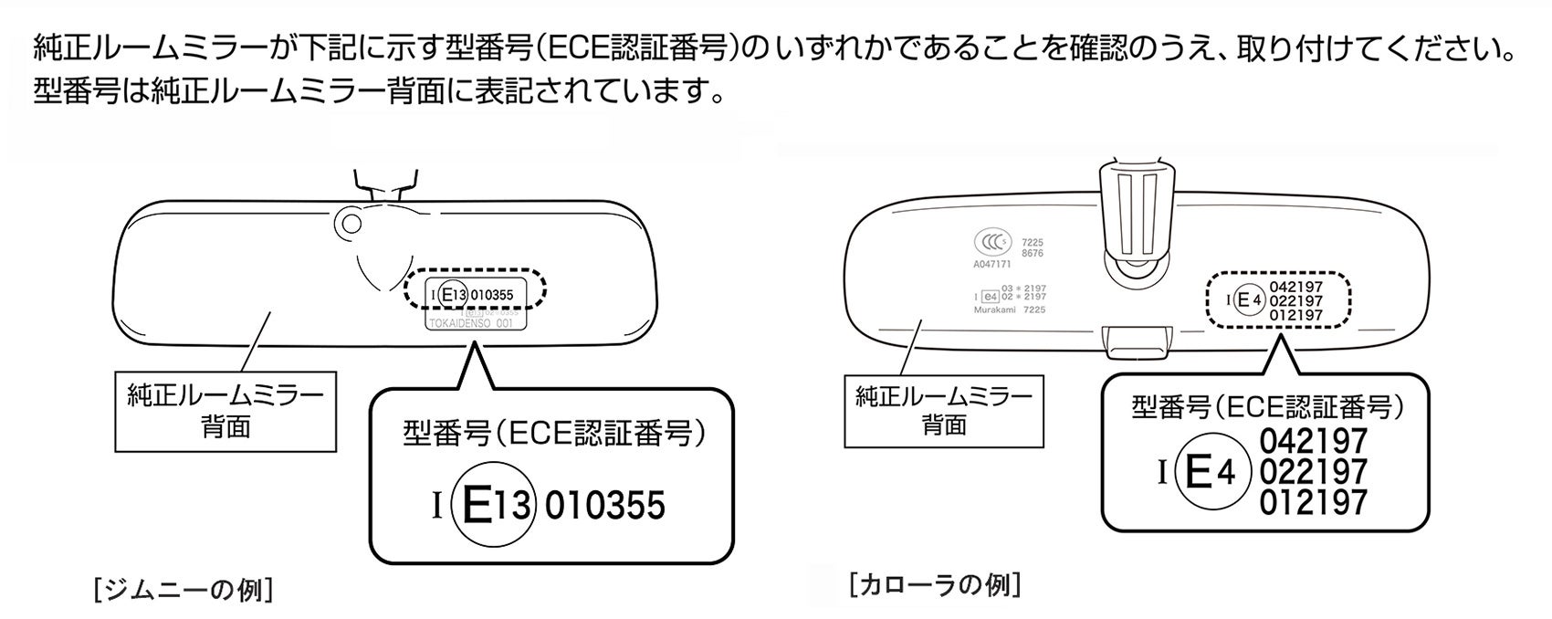 ※適合を調べる際は、純正ミラー背面にあるECE認証番号をご確認ください。