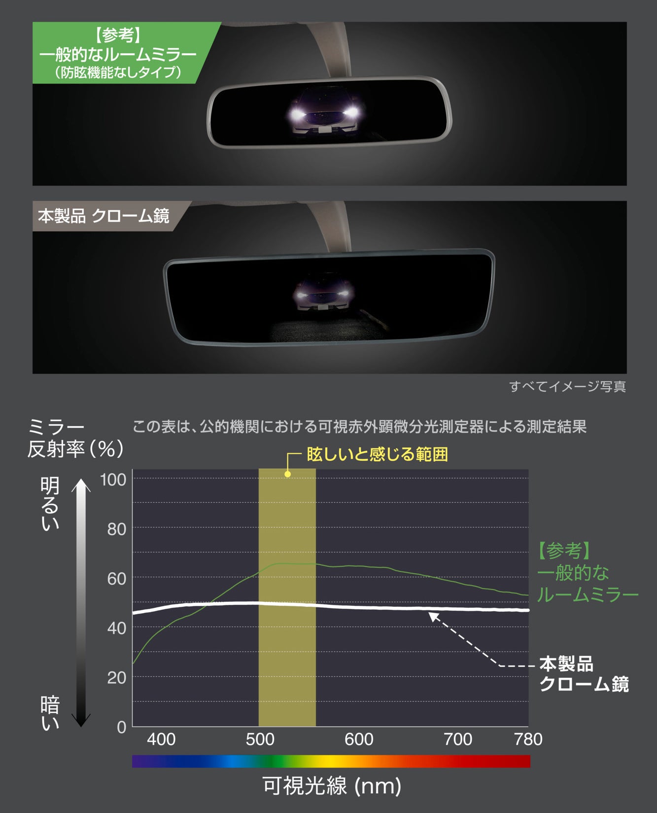 ・後続車のヘッドライトの眩しさを約50%カットする高性能なクローム鏡