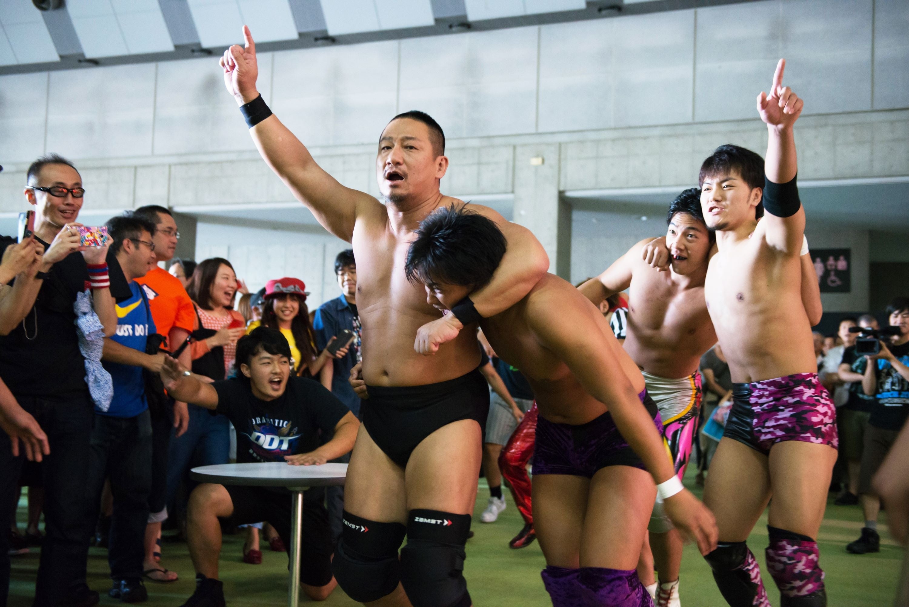 1997年に旗揚げしたプロレス団体。既存のプロレスの常識に囚われないオリジナリティ溢れるエンターテイメントスタイルで、従来の体育会系色の強いプロレス界に「文化系プロレス」の新たな潮流を作り、クリエイティブな発想で全国各地にプロレスの新しい魅力を届けている。特にリングのない場所でプロレスを行う「路上プロレス」はDDTプロレスの人気企画で、毎年夏のHMJを盛り上げている。