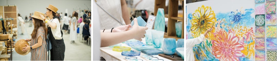 会場内には、アクセサリーやバッグなどのファッションアイテムからインテリア、キッチン、アート、器、手工芸品など、日本各地のクリエイター3,000名による小さなお店が立ち並ぶマーケットや、伝統工芸士や人気クリエイターのものづくりを体験できる約60種のワークショップが集まる「クリエイターエリア」、8組の注目アーティストによるライブステージが展開される「ミュージック&プレイエリア」、日本各地から選りすぐりの手作りフードが集まる「フード&カフェエリア」に分かれ、ここでしかできない体験を通して五感でクリエイティビティを体感できる空間となります。