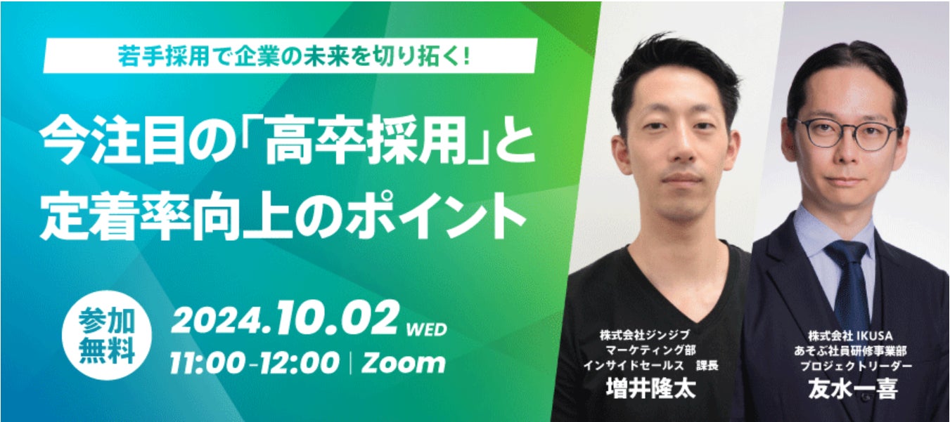 【無料ウェビナー】「今注目の「高卒採用」と定着率向上のポイント」株式会社ジンジブ×株式会社IKUSA共催 10月2日(水) 11:00~