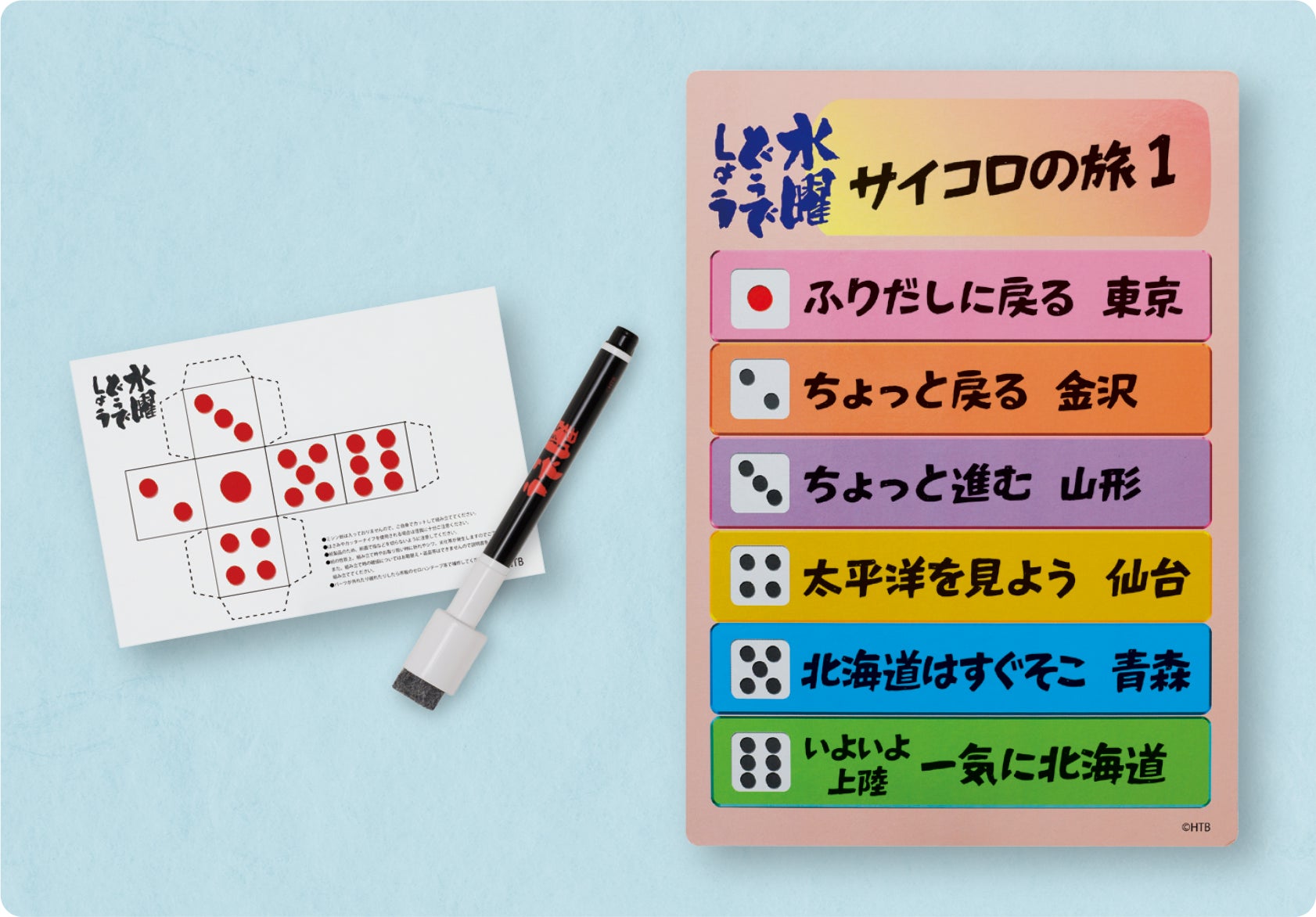 出演陣の未公開写真のオフショットカードを全3回に分けて合計60枚プレゼント。さらに、オフショットカード60枚がすべて収まるオリジナルデザインの収納ファイルもお届けします。また、番組ではお馴染みのサイコロフリップ型のホワイトボードもファン必見のオリジナルアイテムです。