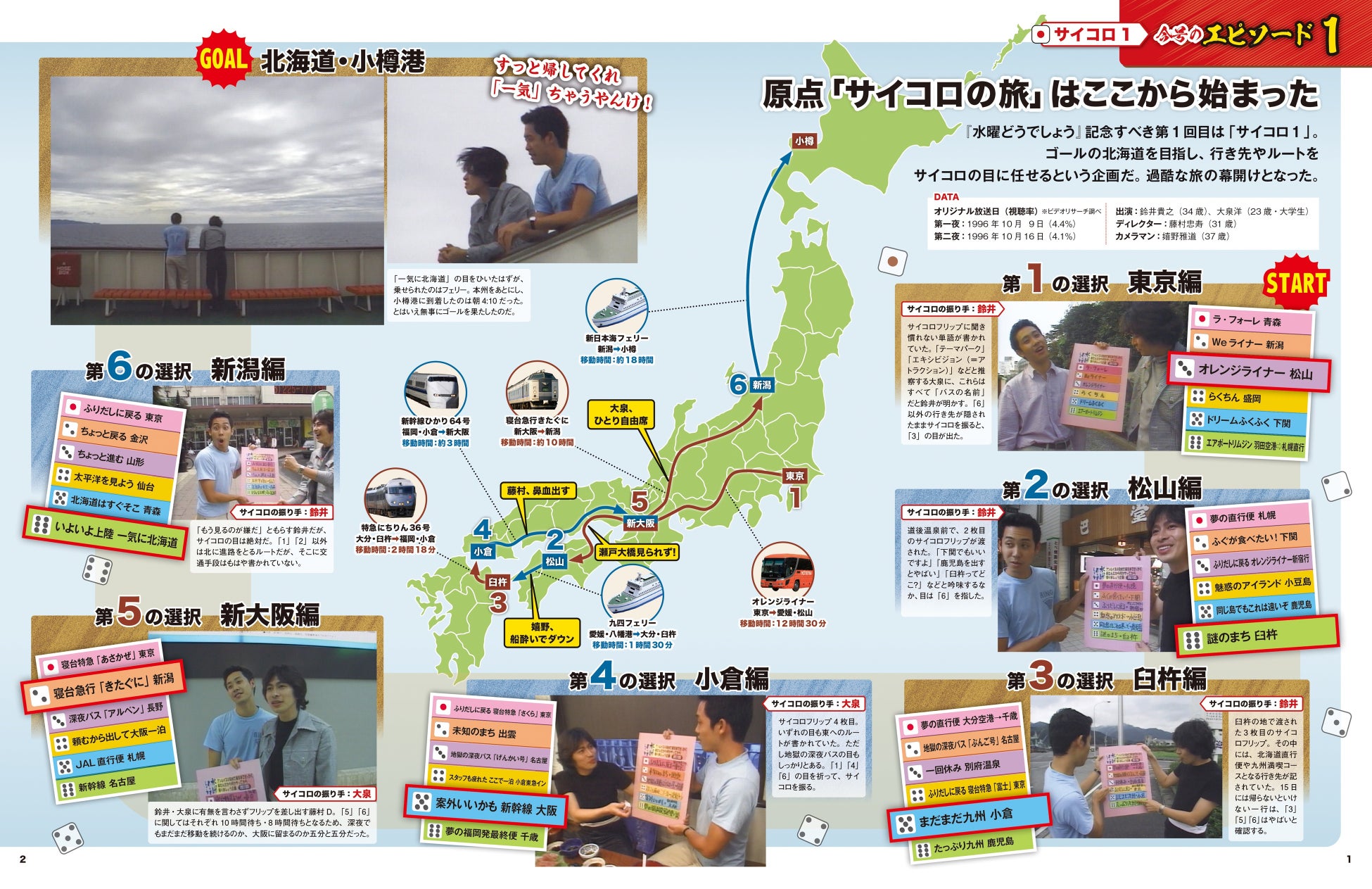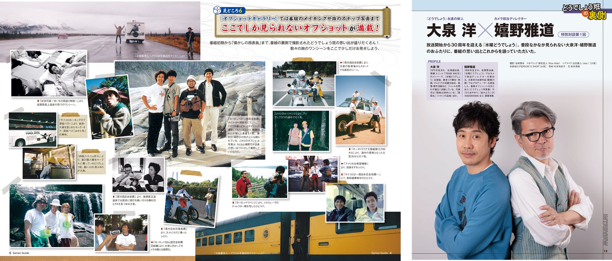 どうでしょう班4名をはじめ、縁深いスタッフやゲスト陣、旅先で出会った人たちなどから伺う裏話を掲載。