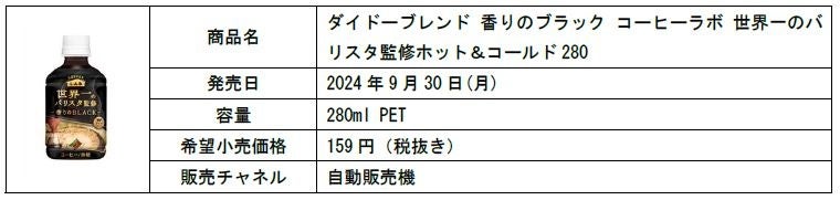 ダイドードリンコ株式会社(本社:大阪市北区、代表取締役社長:中島 孝徳)は、2024年秋冬の新商品として、「ダイドーブレンド 香りのブラック コーヒーラボ 世界一のバリスタ監修ホット&コールド」を9月30日(月)より発売いたします。