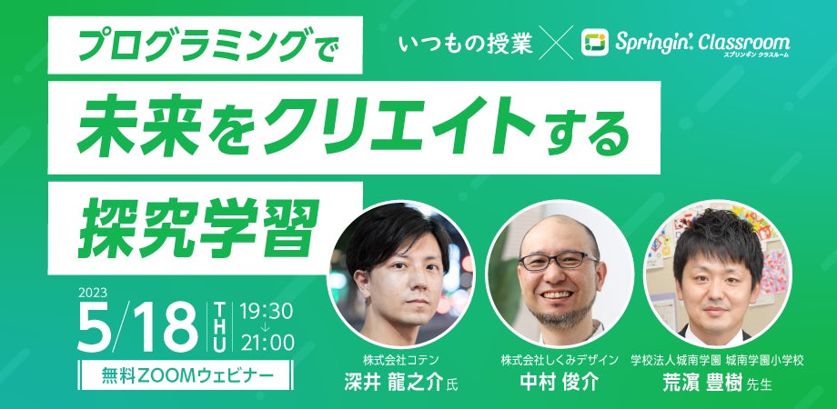この度、「これからの時代に求められる教育」をテーマにご参加の皆様とともに考え、探究するイベント『プログラミングで未来をクリエイトする探究学習 〜いつもの授業+スプリンギンクラスルーム〜』を5月18日(木)に開催いたします。