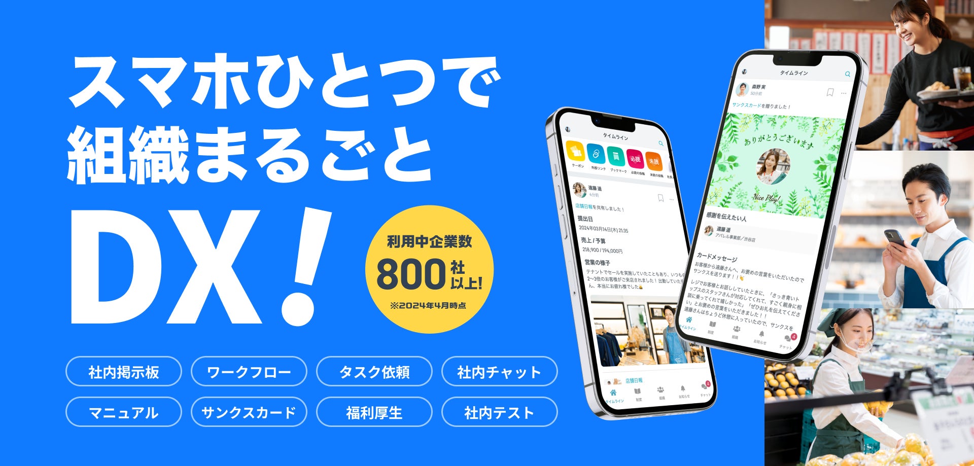 加えて、エンゲージメント向上を目指し従来紙で実施していた施策をアプリを通じてDX化することで、「リアルタイムに情報が届けられない」「入稿・発送・配布の過程で多くのコストがかかってしまう」「従業員の反応がわからない」などのお悩みを解決します。