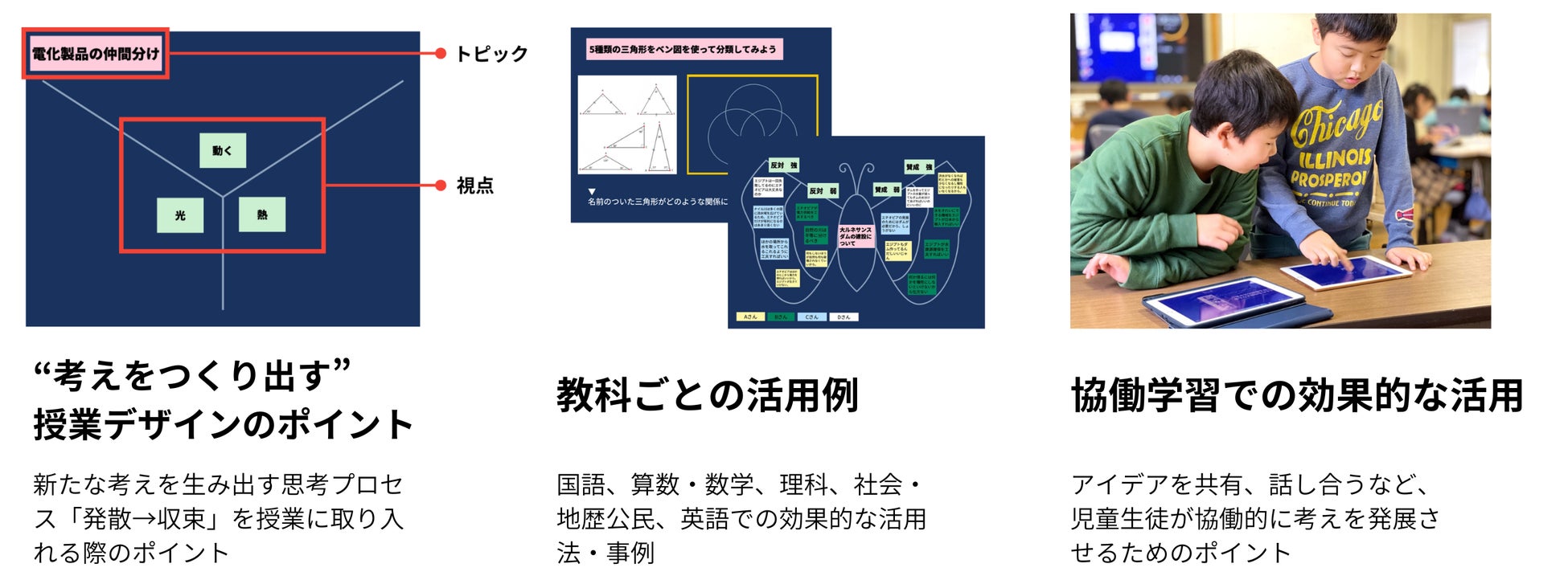 シンキングツールの第一人者 黒上晴夫教授(関西大学)監修による、シンキングツールの活用法ページを公開しました。考えをつくり出す授業デザインのポイントから、教科ごとの活用例、協働学習での活用法など、明日の授業に役立つヒントが満載です!