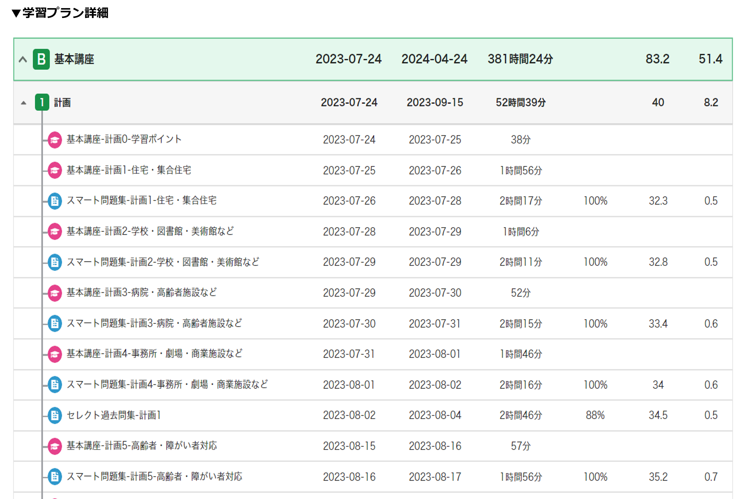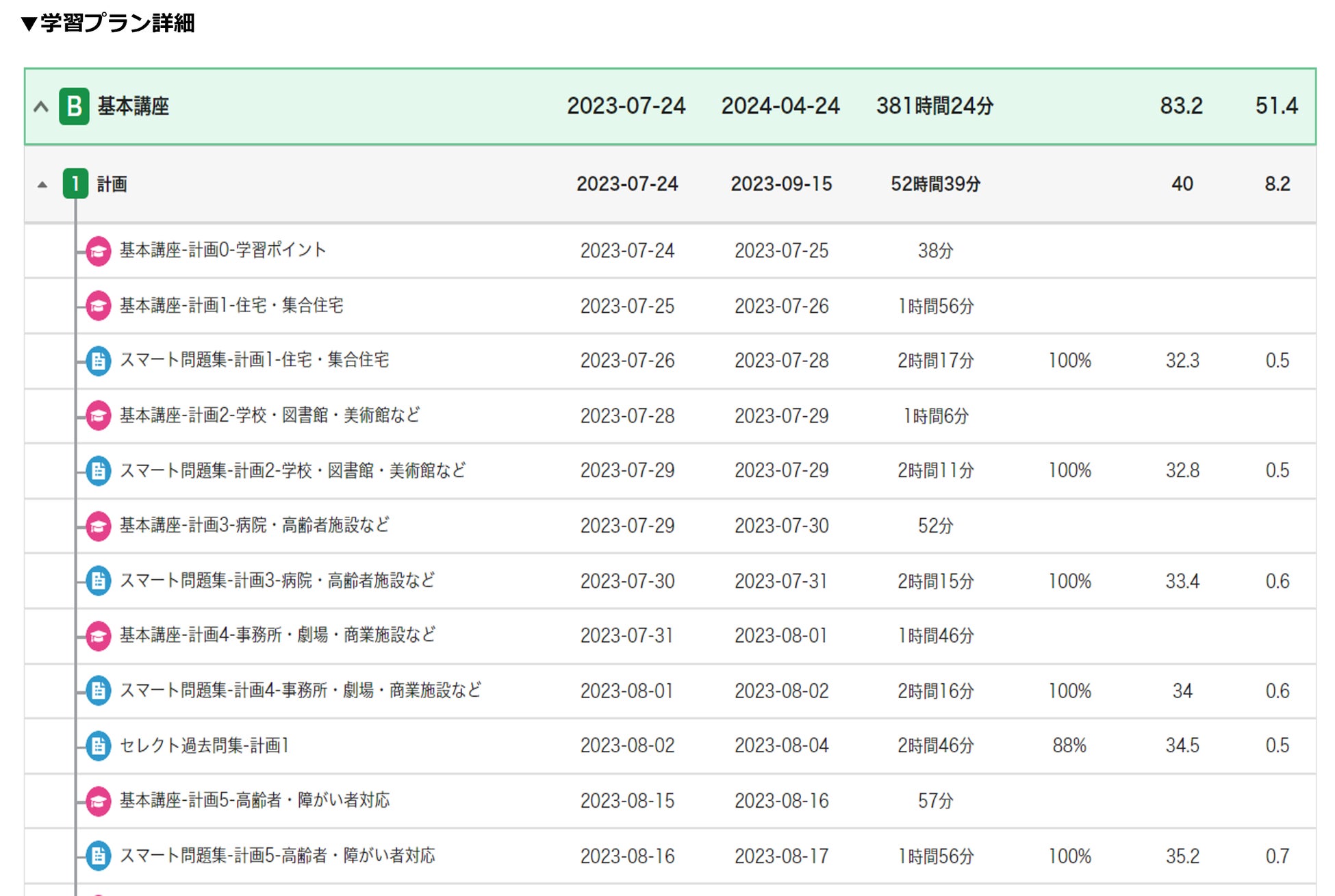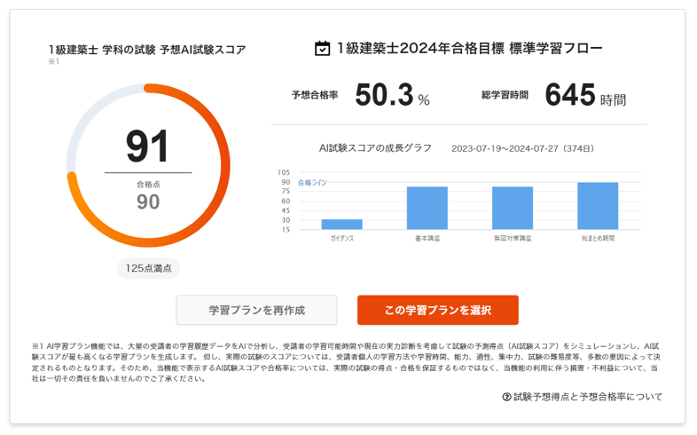 *上記のAI学習プランは、 1級建築士試験 学科の試験に対応しています。設計製図の試験には対応しておりません。