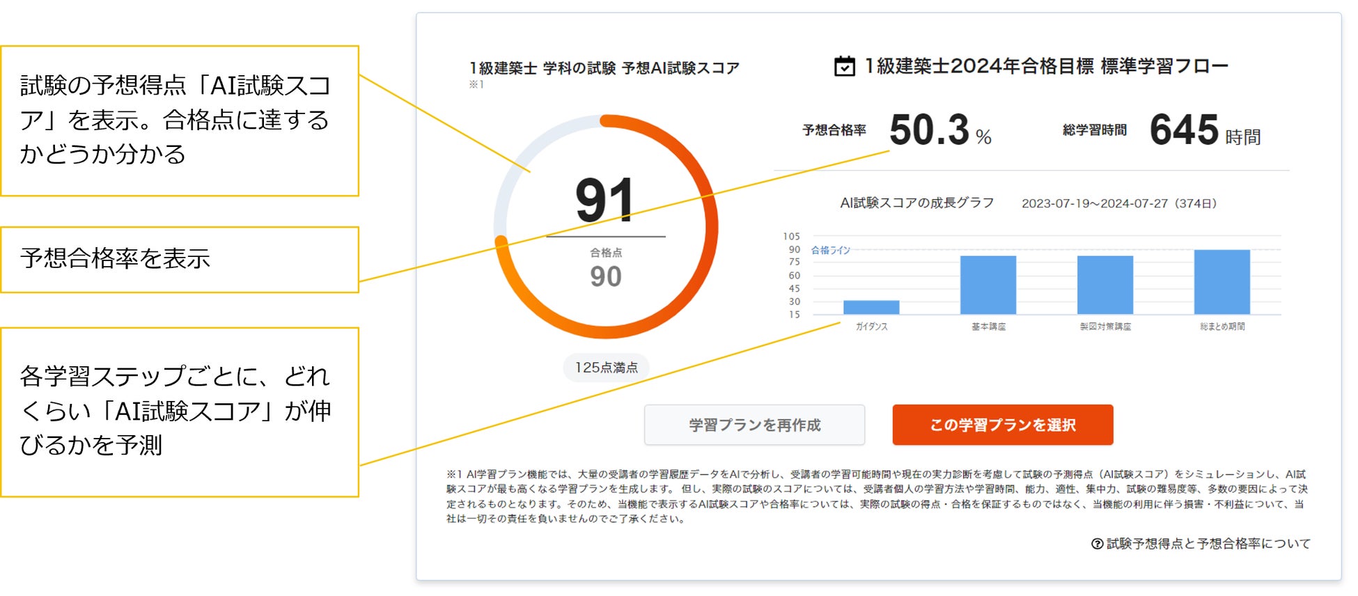 ~蓄積された学習データをAIが分析し、試験の予測得点が最も高くなる学習計画を提案~