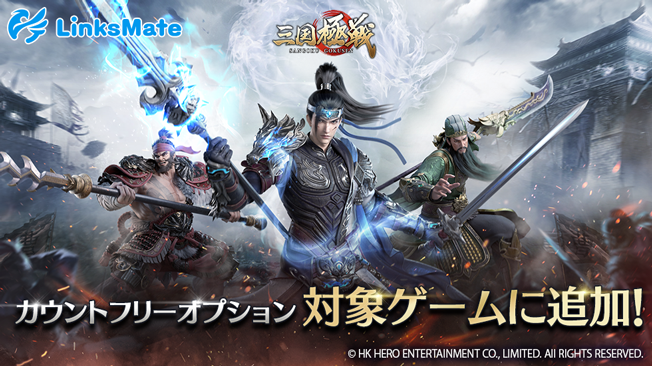 株式会社LogicLinks(以下LogicLinks、本社:東京都渋谷区南平台町17番17号、代表取締役社長:春田 康一)は、MVNOサービス「LinksMate」において、2022年11月22日(火)よりカウントフリーオプション対象コンテンツとしてHK HERO ENTERTAINMENT CO.,LIMITED(以下HK HERO ENTERTAINMENT、本社:香港、代表取締役社長:Bin Yang)が提供する『三国極戦』を新たに追加することをお知らせいたします。
