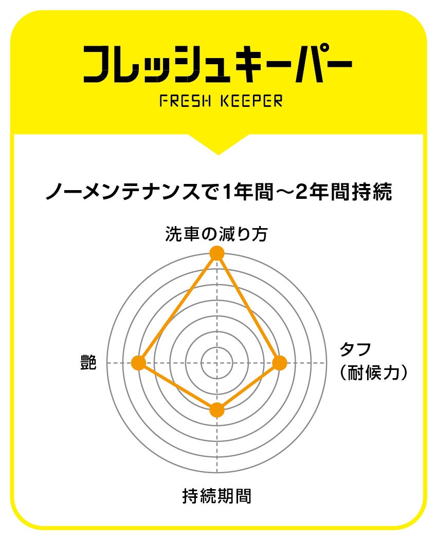 ガラス被膜+レジン被膜の重層の透明被膜が生んだ、「愛車のツヤと輝きを凌駕するボディガラスコーティング」。塗装面のツヤを損ねる微細キズや凸凹を「ガラス被膜」が埋めて平らにし、異次元のツヤを生むと同時に酸性雨や紫外線から塗装を守ります。さらに強固な「レジン被膜」で水シミなどが固着せず徹底的に塗装を守り※1、新車をも上回る美観を保ちます。