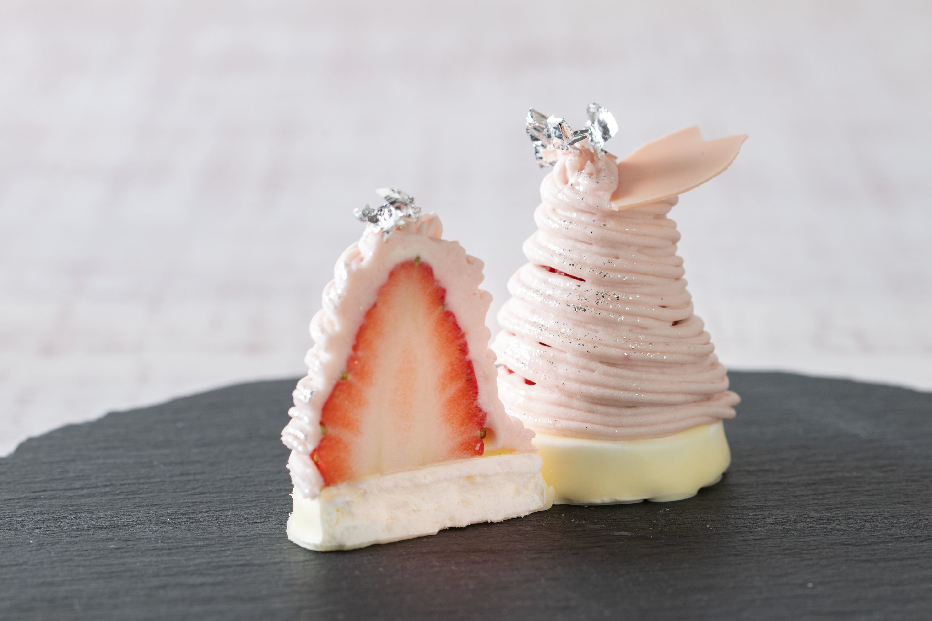 ▲(左)桜香るムース チェリーコンポート ピスタチオクリーム (右)丸ごとストロベリーモンブラン