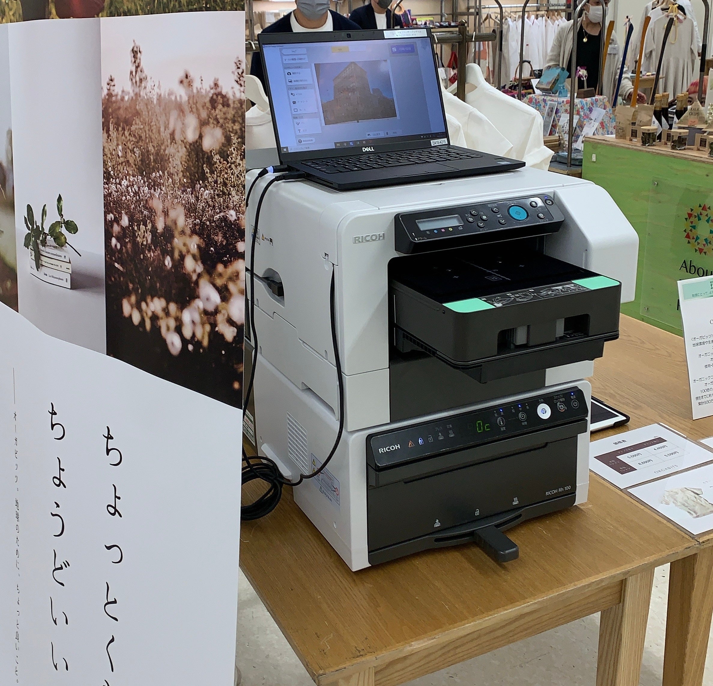 オーガビッツが手掛けるオーガニックコットンTシャツに、プリンターを用いて好きなプリントを施すことができるワークショップを開催。