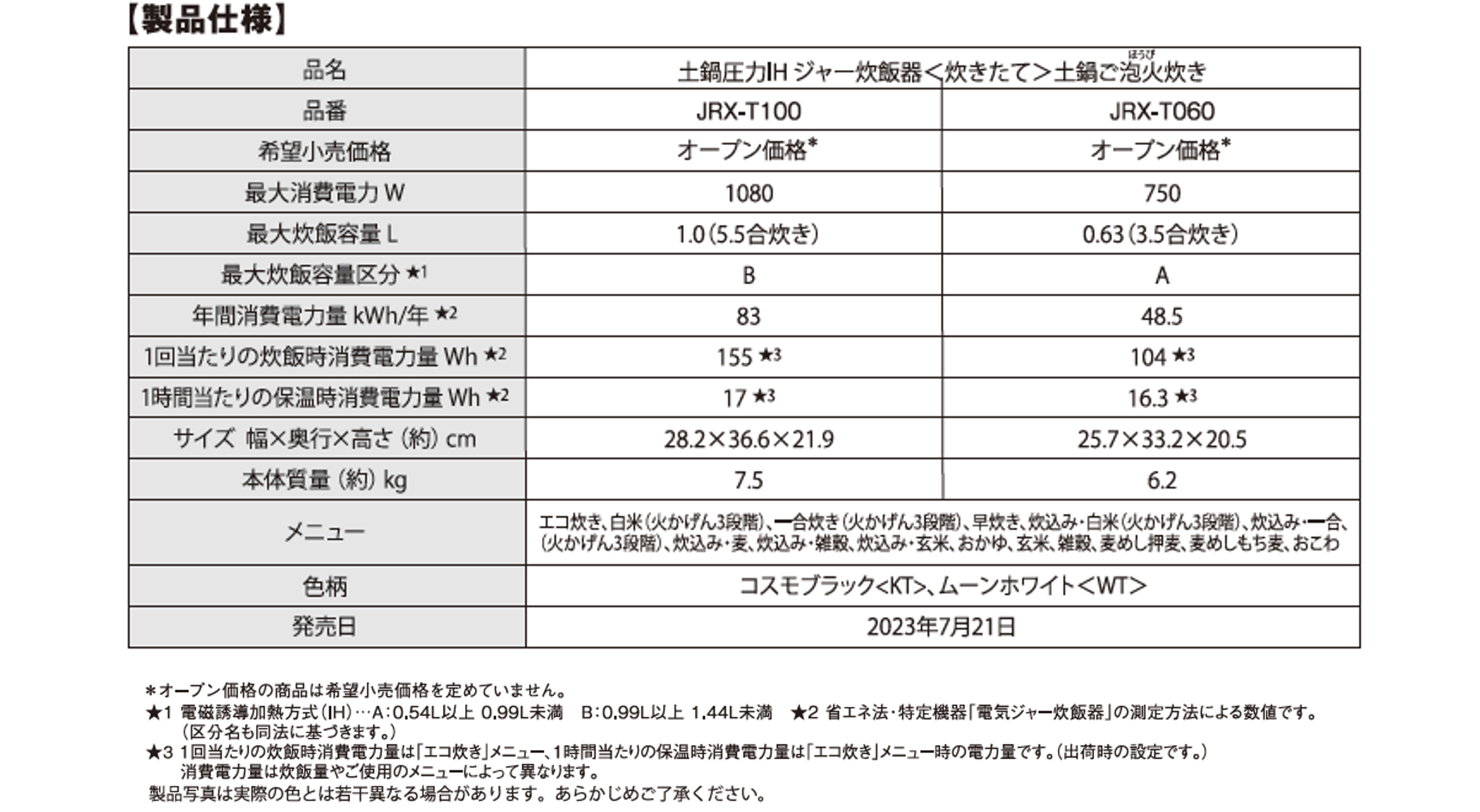 ※JRX-T100において。
