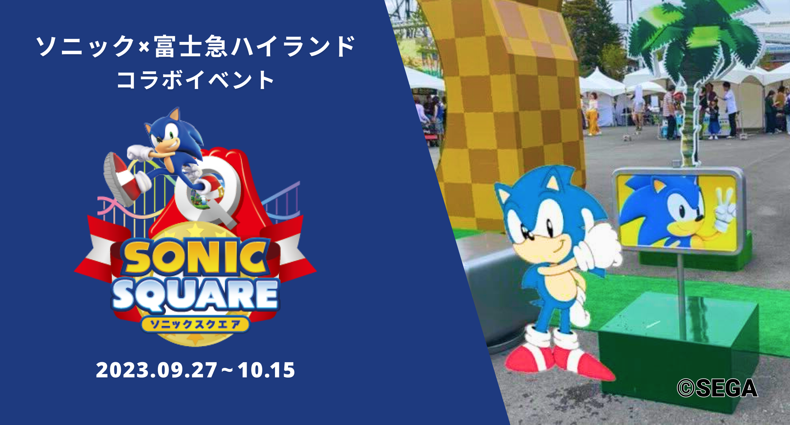 「SONIC SQUARE(ソニックスクエア)」は、「ソニック」シリーズと富士急ハイランドのコラボイベントです。「ソニック」シリーズのキャラクターによるアトラクションや園内アナウンスのほか、ゲーム内ステージやアイテムを再現したフォトスポット、本イベントでしか遊ぶことのできない謎解きゲームやガラポンなどが展開されました。