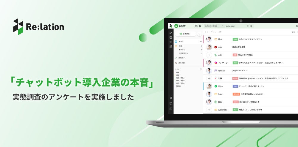 顧客対応クラウド『Re:lation(リレーション)』を開発・提供する株式会社インゲージ(本社:大阪府大阪市、代表取締役社長:和田 哲也)は、チャットボットを活用している463社の従業員および経営者を対象に実態調査を目的としたアンケートを実施しました。