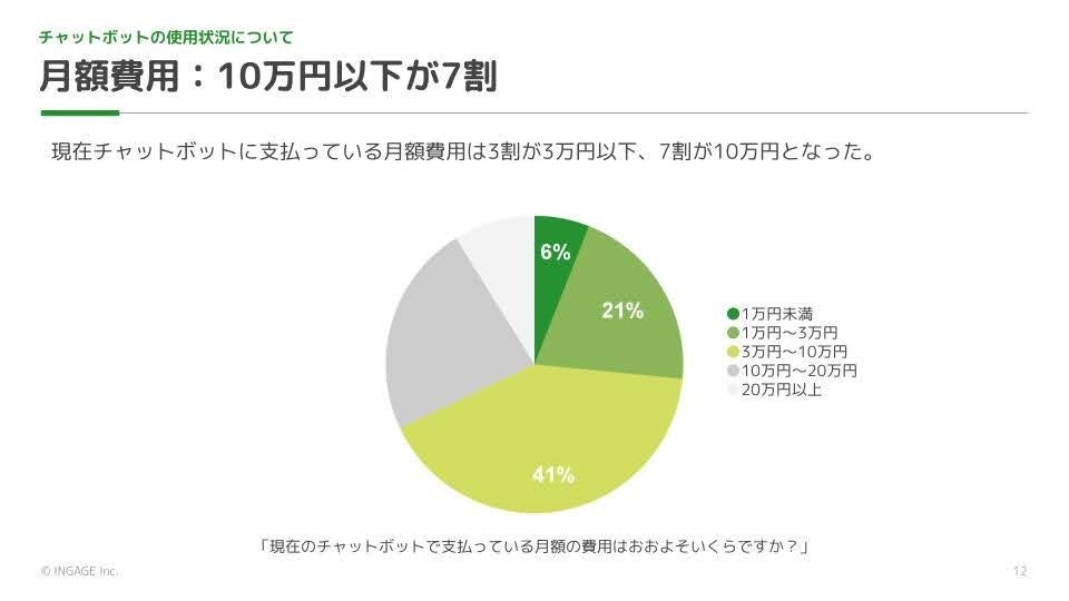 用途は社内・社外の問い合わせ自動化、月額課金は10万円以下が7割