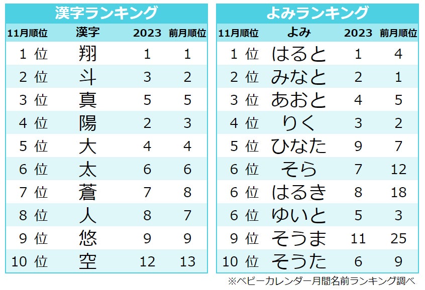11月1日に第14回2023年赤ちゃんの名前ランキングを発表しました!