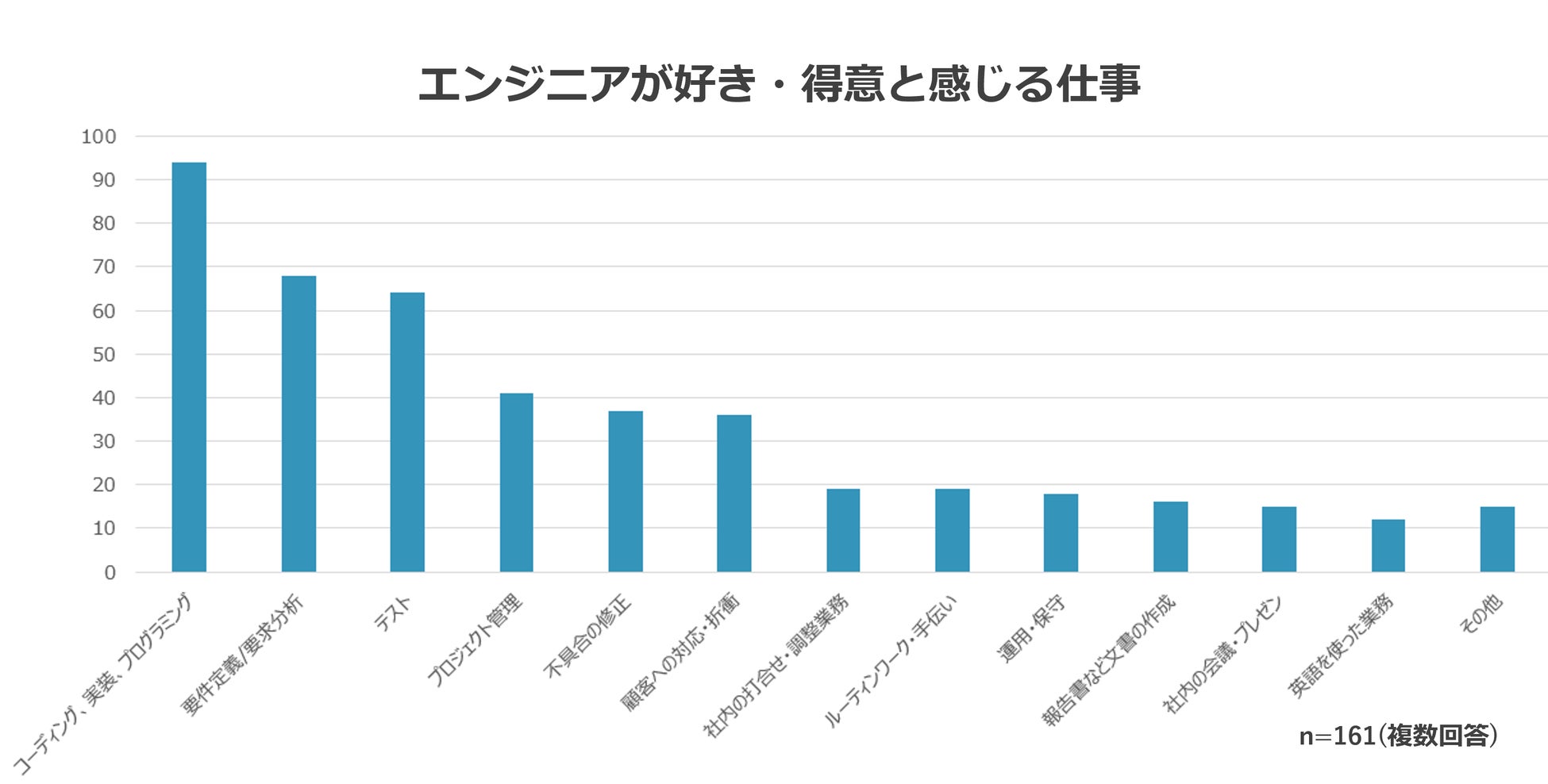 ・エンジニアの好き・得意だと感じる仕事1位は「コーディング、実装、プログラミング」