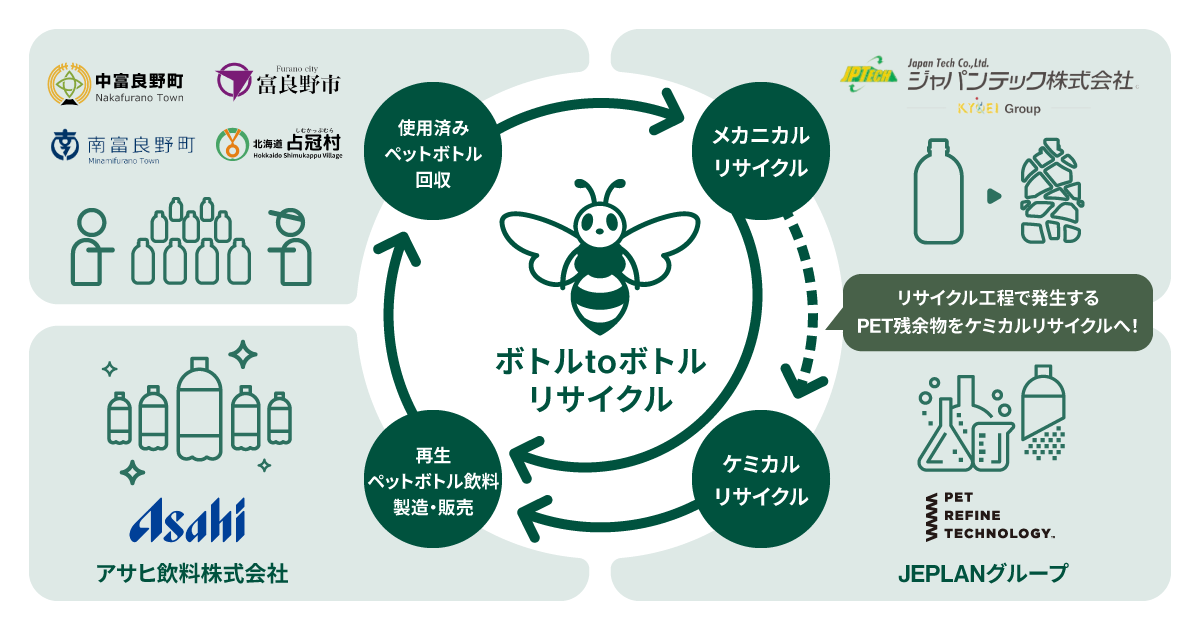 JEPLANグループ:ペットリファインテクノロジー、北海道内4市町村・アサヒ飲料・ジャパンテックと「ペットボトルの水平リサイクルの実施に関する協定書」を締結