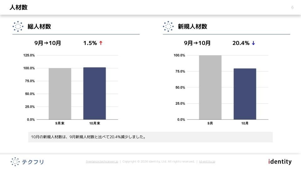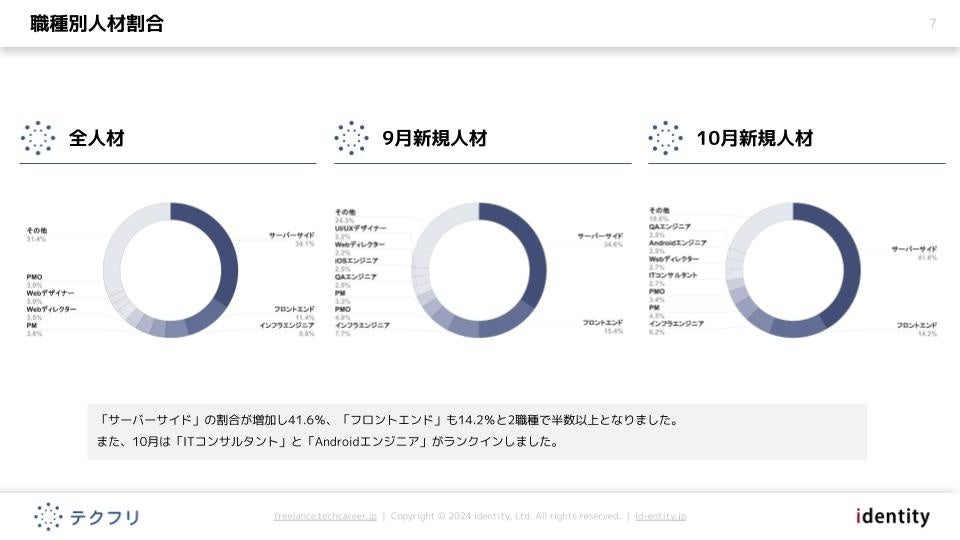 ITフリーランスエンジニアの案件・求人サイト「テクフリ」(https://freelance.techcareer.jp/)を運営する株式会社アイデンティティー(東京都港区、代表取締役:今野 力、以下「当社」)は、テクフリのデータベースをもとに2025年10月における人材の市況感を調査しました。より詳しい結果については、お問い合わせから資料請求が可能です。