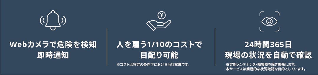進入検知:立入禁止エリアへの侵入を検知し、管理者への即時通知から迅速な対応へとつなげ、現場の安全を維持します。