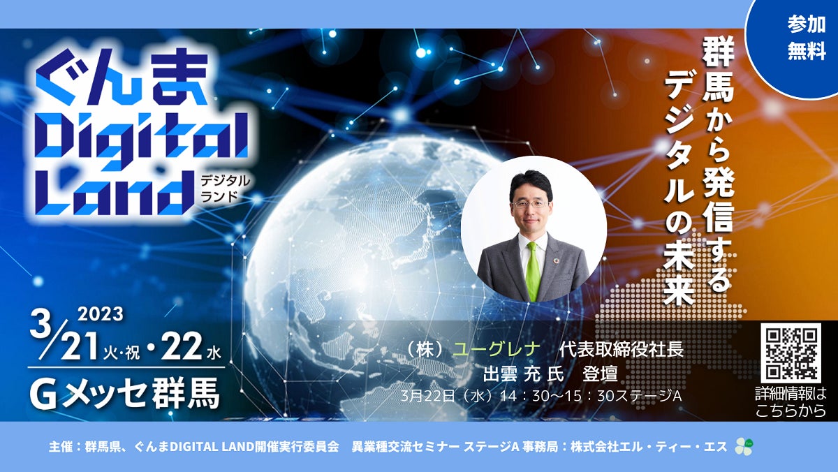 本受託業務でLTSがプロデュースした5組の講師陣によるセミナーが、3月21日(火・祝)・22日(水)「ぐんまDigital Land」内で開催されることをお知らせします。