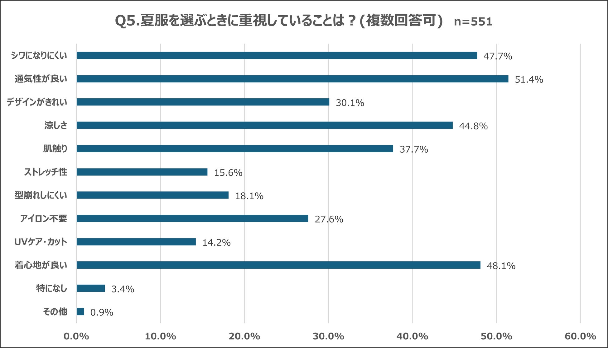 ●夏服選びで重視されるのは「洗える・シワにならない・着心地が良い」