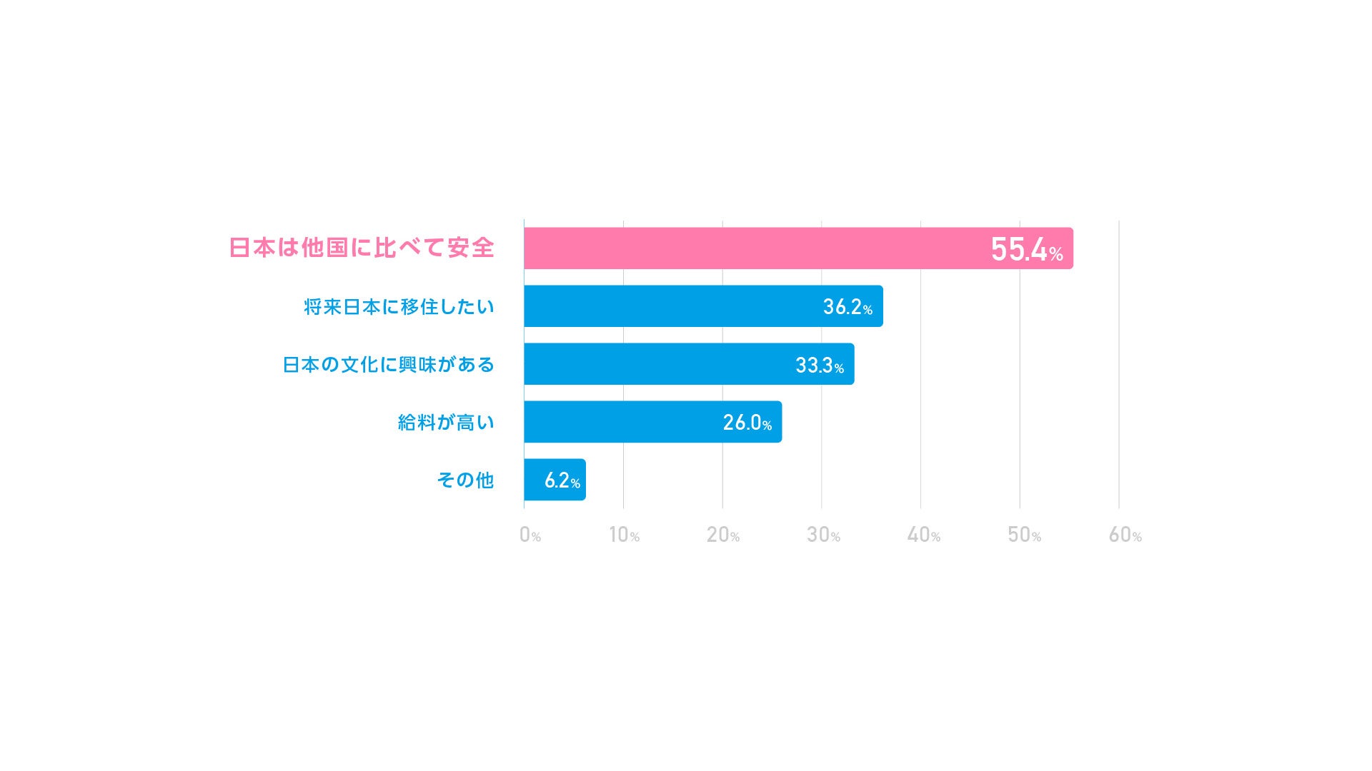 日本で働きたい理由は「日本は他国に比べて安全」が55.4%と最多