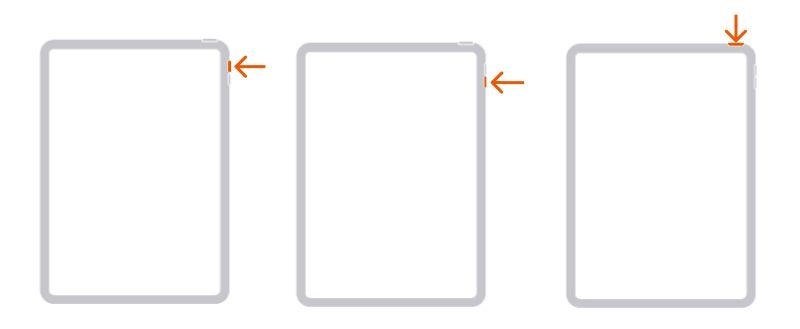 トップボタンに近いほうの音量ボタンを押してすぐに放し、トップボタンから遠い音量ボタンを押してすぐに放し、トップボタンをAppleのログが表示されるまで長押しします。