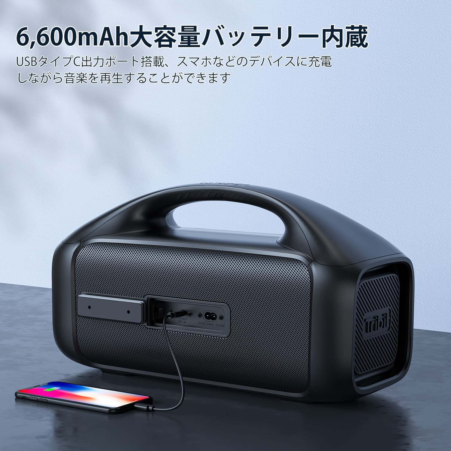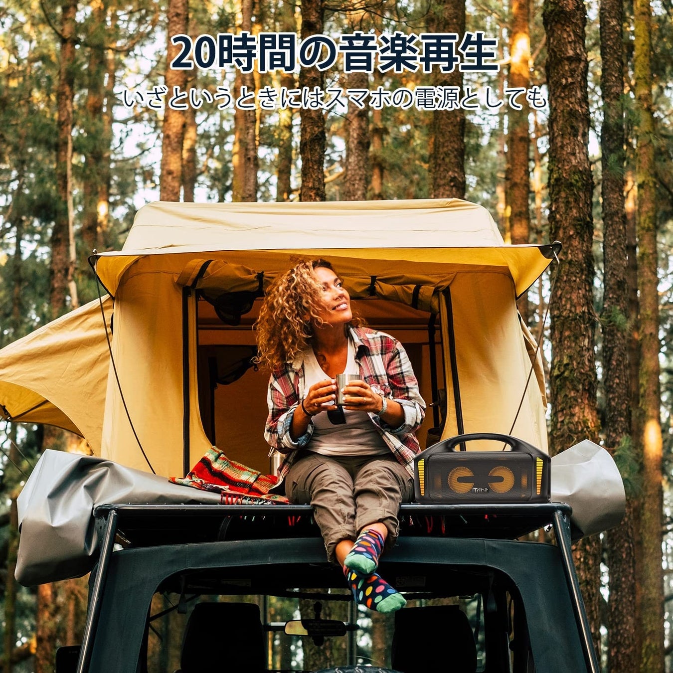 Tribit独自のRunStretchテクノロジーにより、音楽に合わせる最適な電流・電圧を提供し、低消費電力化をしたことで、驚きの20時間連続再生を実現しました。またUSB Type-Cの出力ポートを搭載しており、音楽を再生しながらスマホなどのデバイスを充電ができます。