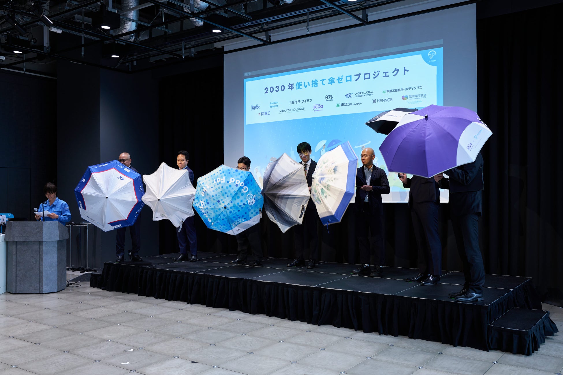 2030PJには、新たにHENNGE、東急コミュニティー、三菱地所・サイモン、日本テレビ、阪神電気鉄道、つくばエクスプレスの大手企業6社が新規参画し、パートナー企業は合計18社となりました。梅雨に向けて会社毎にオリジナルデザインの傘を制作し、各エリアにて展開を開始いたします。