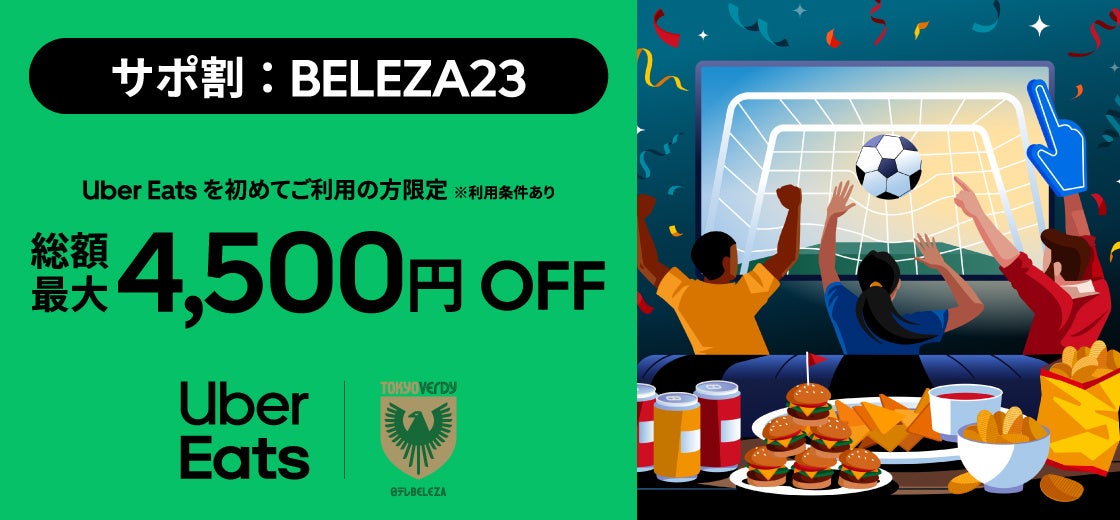 【東京ヴェルディ】Uber Eats Japan 合同会社との「総額最大4,500円OFFキャンペーン」開始のお知らせ