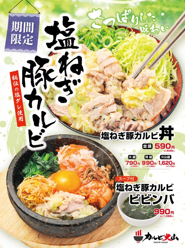 火山盛で人気のカルビ火山が期間限定で『塩ネギ豚カルビ丼』を販売開始