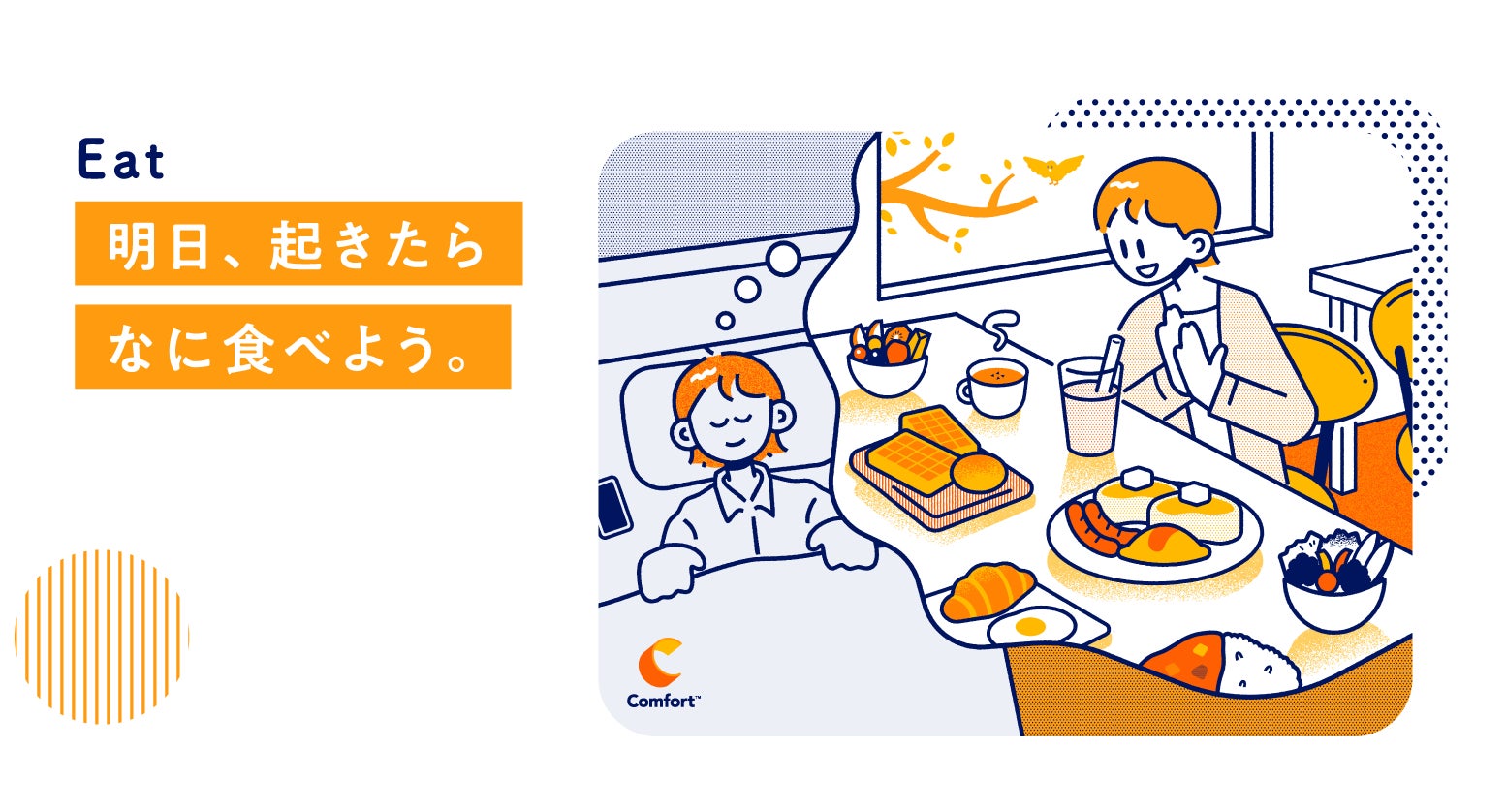 「明日、起きたらなに食べよう。」