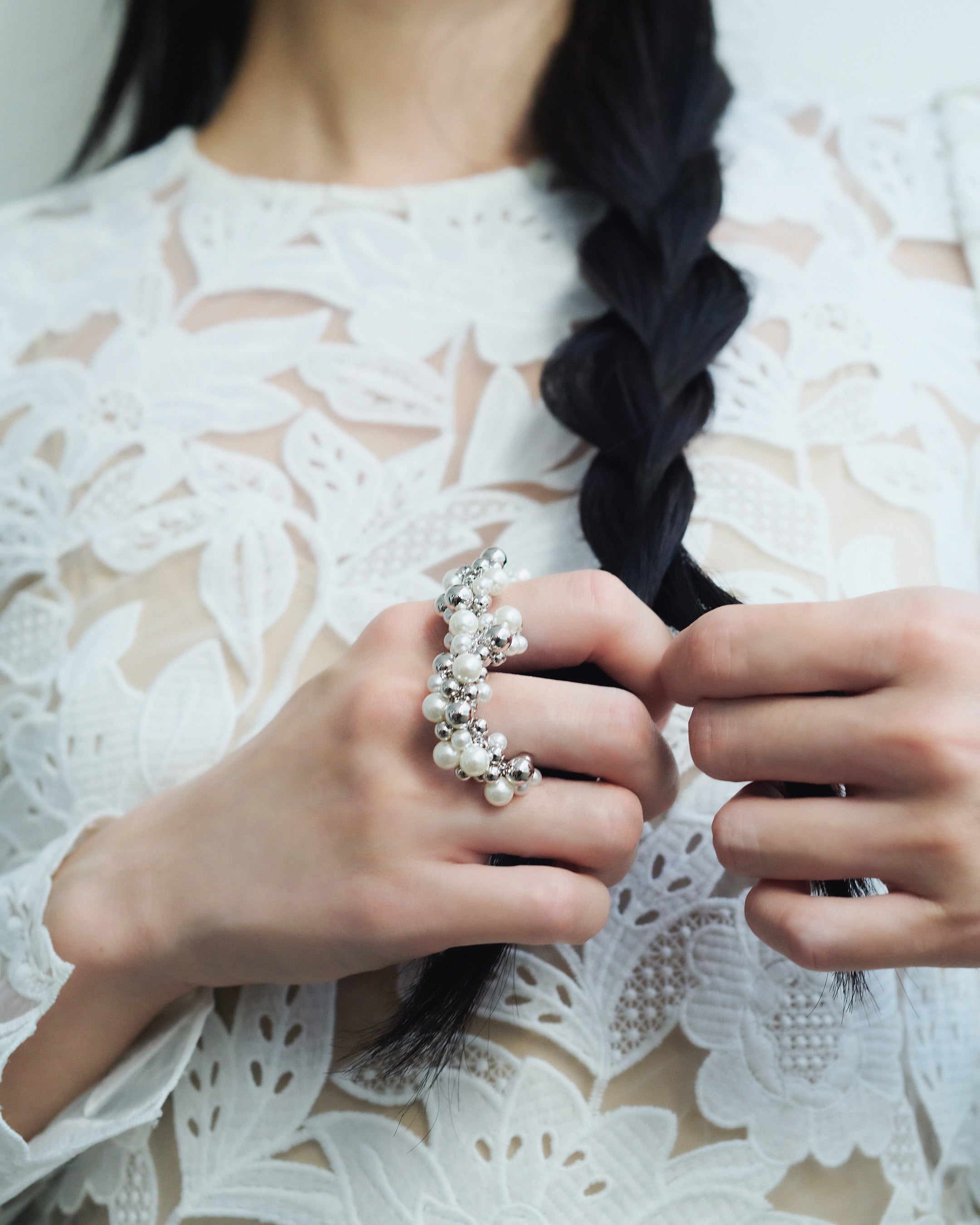 パールミックスフリンジダブルフィンガーリング(シルバー):¥16,500円(税込)