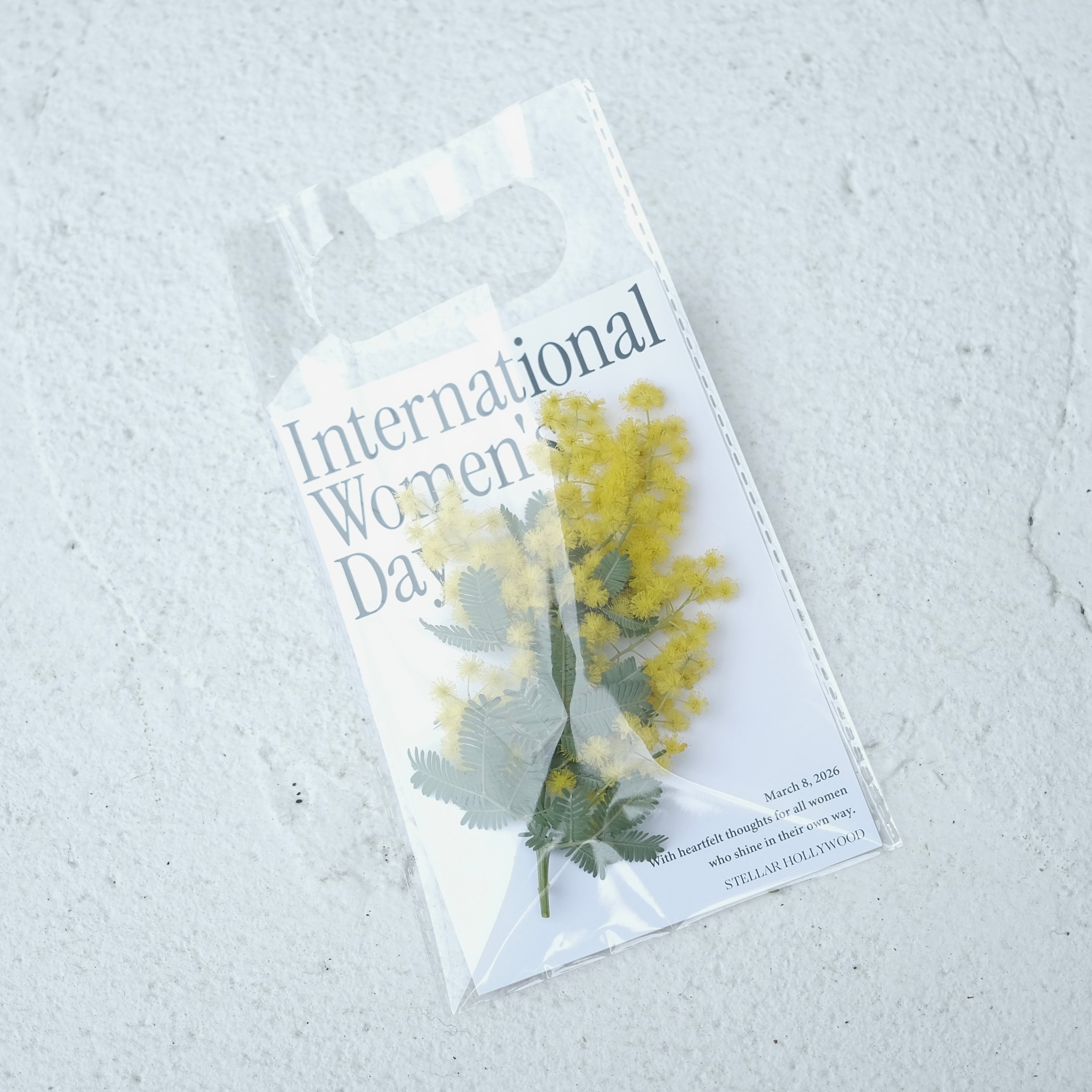 3月8日の国際女性デーを記念し、STELLAR HOLLYWOOD 表参道店では、期間中に商品をご購入いただいたすべてのお客様へ、先着でミモザの花を一枝プレゼントいたします。