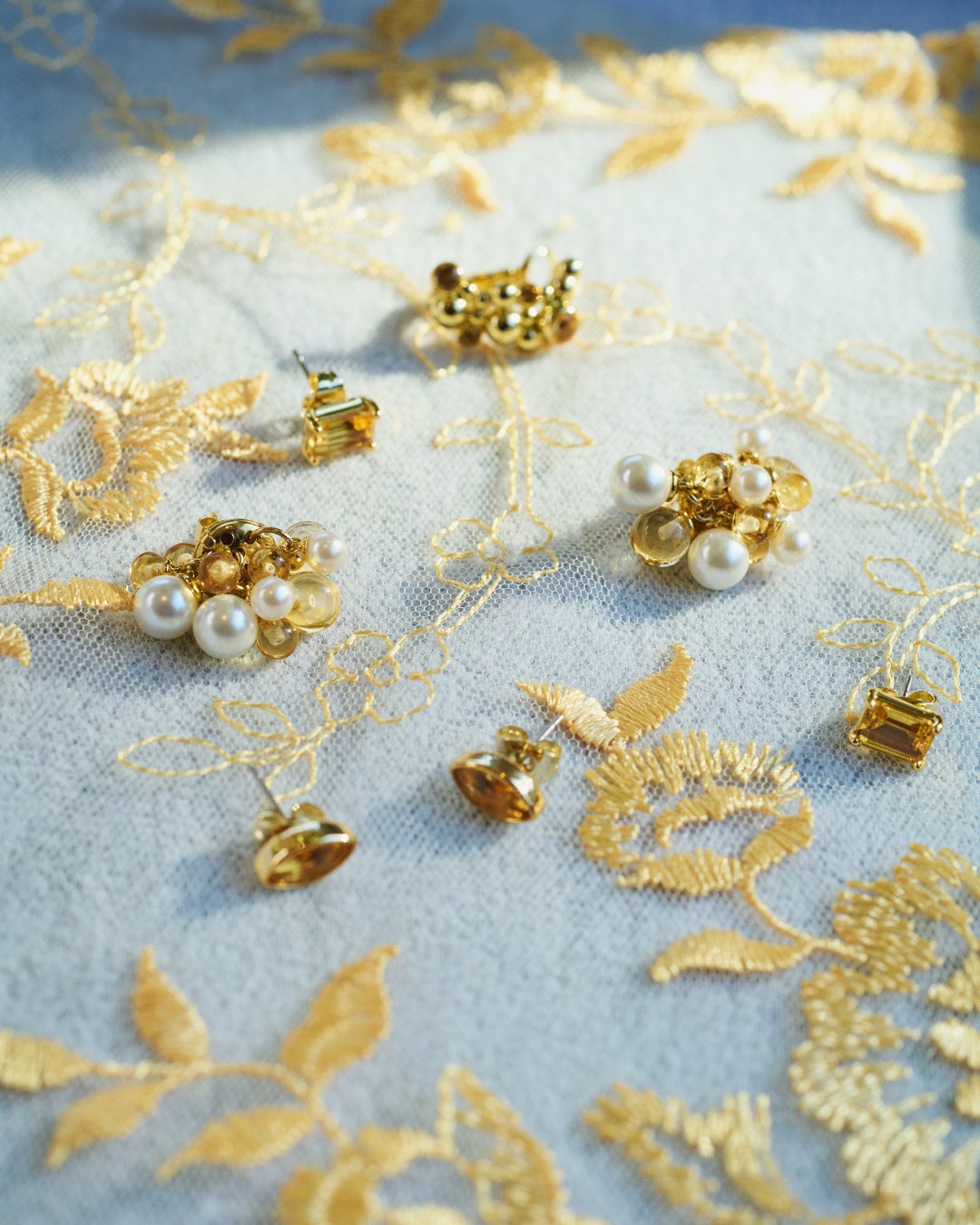 シトリンパールミックスブーケイヤークリップ(ゴールド)(片耳):¥9,900円(税込)