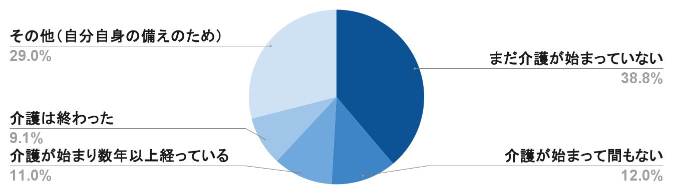 まだ介護が始まっていない予備軍層が約4割、その他(自分自身の備えのため)が約3割参加