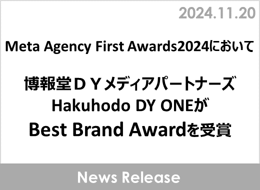 Meta日本法人Facebook Japanが主催するMeta Agency First Awardsにおいて、博報堂DYグループの株式会社博報堂DYメディアパートナーズ(本社:東京都港区、代表取締役社長:矢嶋弘毅、以下 博報堂DYメディアパートナーズ)および株式会社Hakuhodo DY ONE(本社:東京都渋谷区、代表取締役会長:田中雄三 代表取締役社長:小坂洋人、以下 Hakuhodo DY ONE)がBest Brand Awardを受賞いたしました。