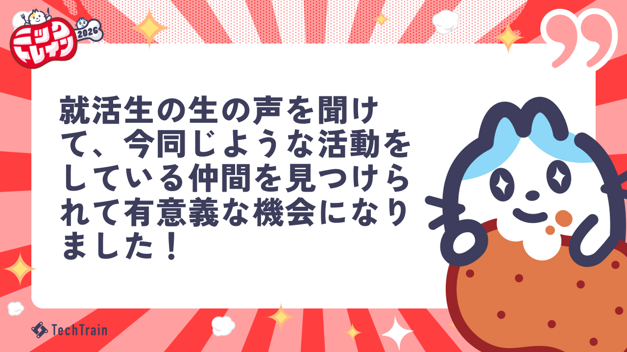 株式会社TechBowlは、今後もエンジニアを目指す学生の成長と、プロダクトで価値を届けられる人材の育成に向けた支援を継続してまいります。TechTrainには高度な技術力と実務経験を持つメンター、そして高い志を持つ学生コミュニティが集まっており、実践的な学びを得られる環境を整えています。