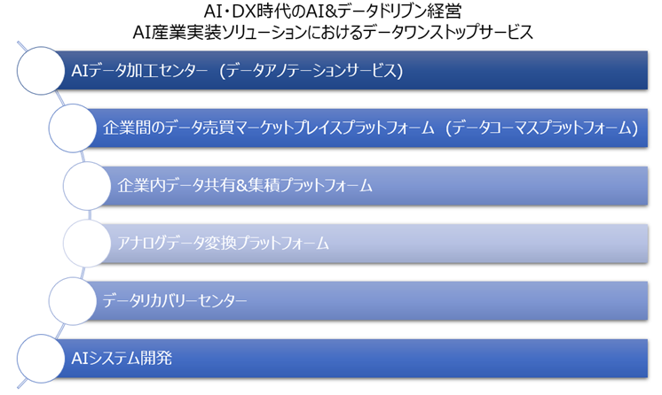 AIプロジェクトにおけるシステム開発において、AI学習用データの管理から運用までトータルでのデータワンストップサービスを展開していきます。
